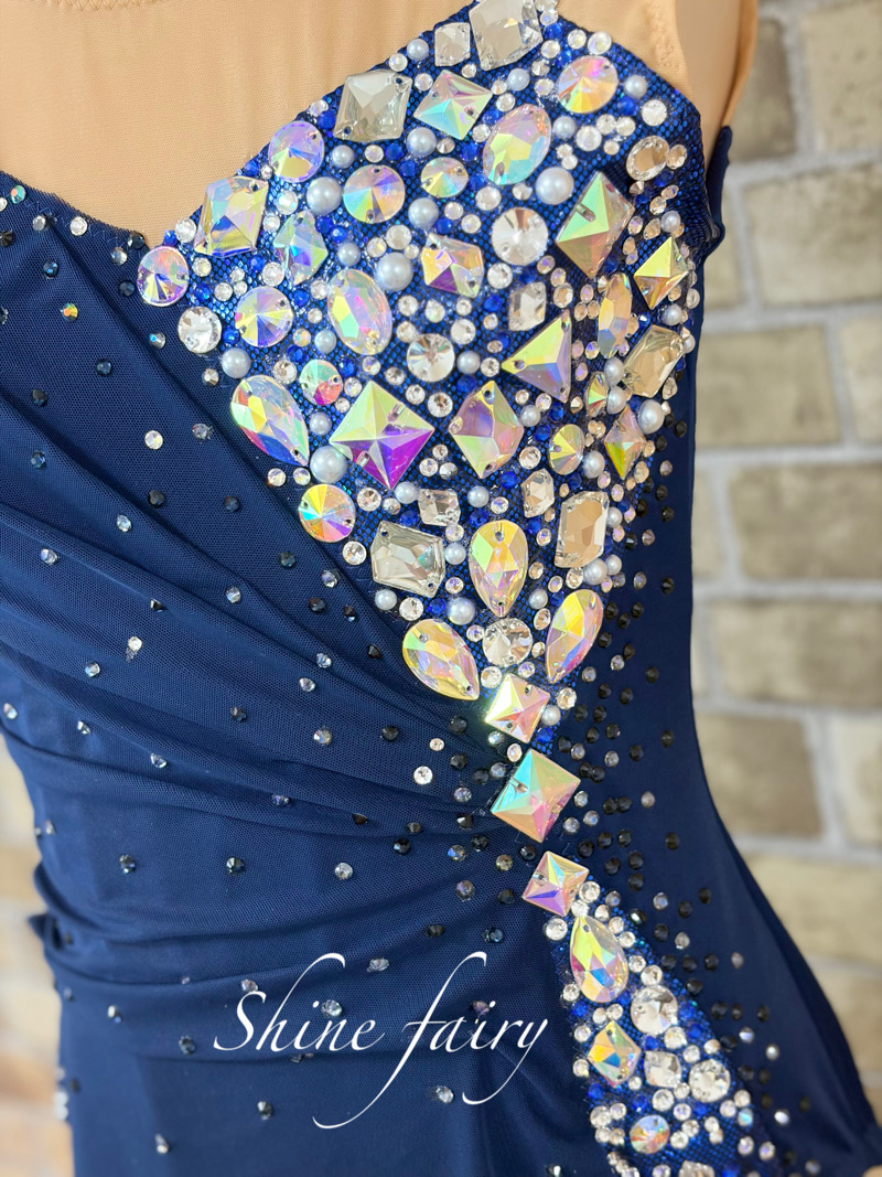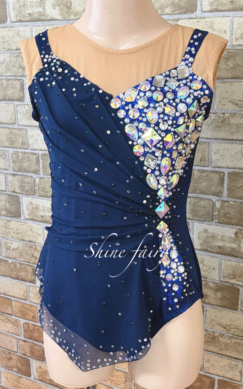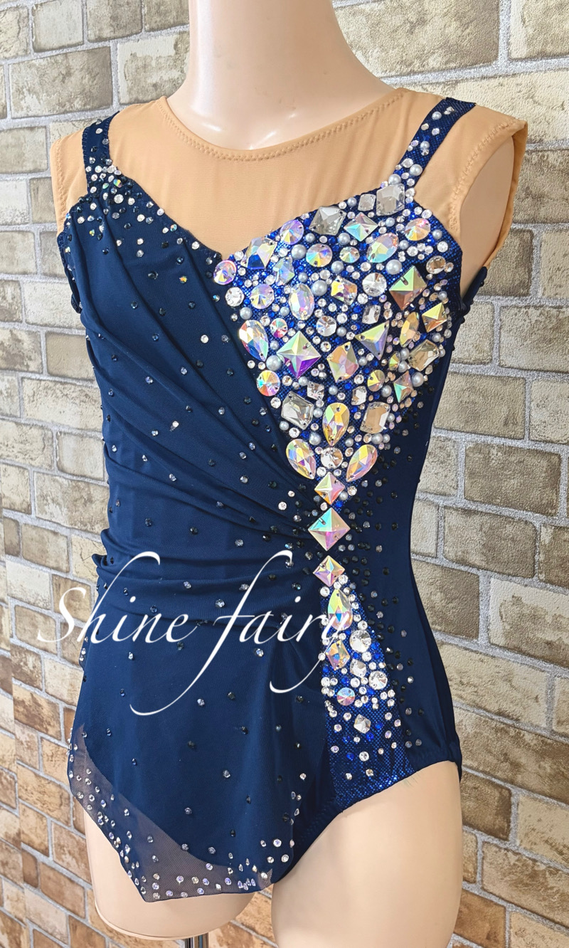 希望サイズで製作★ 新体レオタード☆ネイビー豪華オーロラストーンがたっぷりデザイン